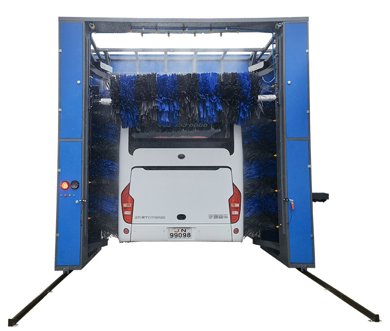 凱沃牌大型移動式龍門洗車機(jī)專門為清洗大客車,大型貨拒車,工程車,中巴車等車輛而設(shè)計。適用于清洗車輛外表面的灰塵油污及其他污漬。 采用三刷包圍式清洗方式,進(jìn)口毛刷,全電腦控制程序,自動避讓后視鏡,讓被清洗車輛更加安全以及更大程度的保護(hù)車漆表面。本機(jī)可另外配備全自動高壓噴水系統(tǒng)、自動底盤清洗系統(tǒng)、污水循環(huán)處理系統(tǒng)、 風(fēng)干系統(tǒng),當(dāng)車輛至清洗區(qū)指定位置停止后,啟動洗車設(shè)備,洗車機(jī)在行走軌道上往復(fù)運(yùn)行完成整個洗車過程。